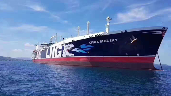 2018年8月7日,世界上美麗的LNG“藍(lán)天”號(hào)靠泊新奧舟山LNG接收站海港?!八{(lán)天(STENABLUE SKY)”輪船籍巴拿馬,船長285.40米,寬43.40米,載14.5萬立方LNG由卡塔爾開航駛來舟山港。該輪以其獨(dú)特的外觀和炫麗的彩繪圖案贏得全球美的LNG船舶稱號(hào)。